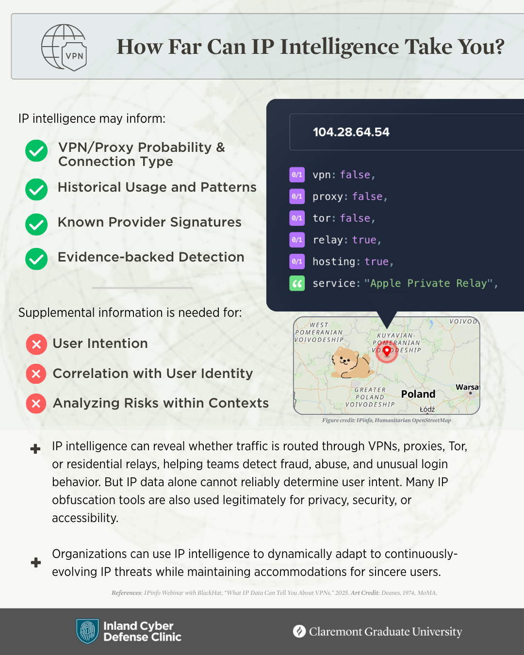IP intelligence is a critical but often overlooked component of modern cybersecurity infrastructure. As privacy technologies continue to evolve and proliferate, organizations must develop thorough approaches to handling the volatile nature of modern network traffic.