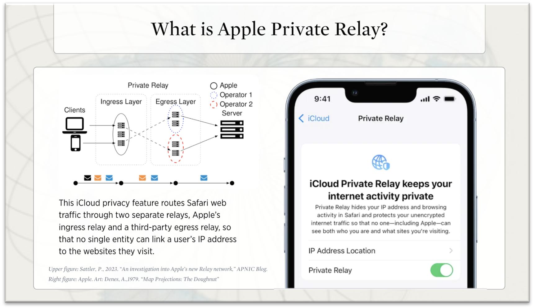 Many of the largest tech companies have introduced privacy solutions that occupy a middle ground. Apple’s Private Relay, for instance, aims to preserve approximate geolocation while obscuring the user’s specific IP address. These services present complex security challenges as they maintain some level of geographical accuracy while providing a degree privacy protection.